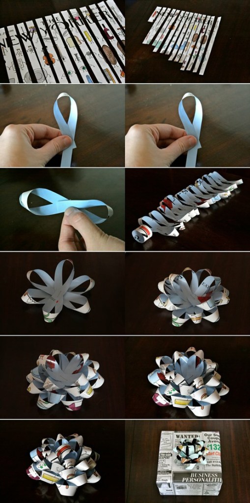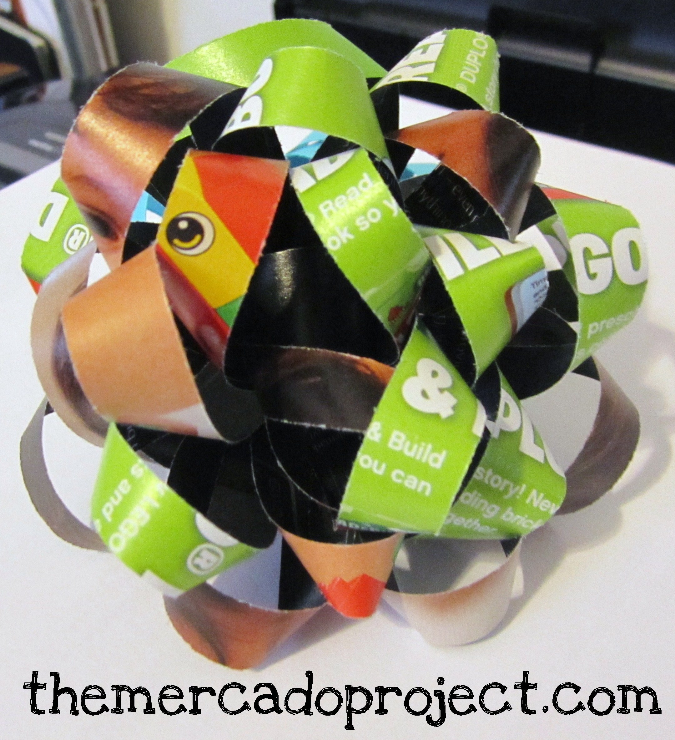 When I saw this pin for magazine gift bows, I thought, “Oh my gosh, I have to try this because if it works, I will never buy a gift bow again!”  Guess what?