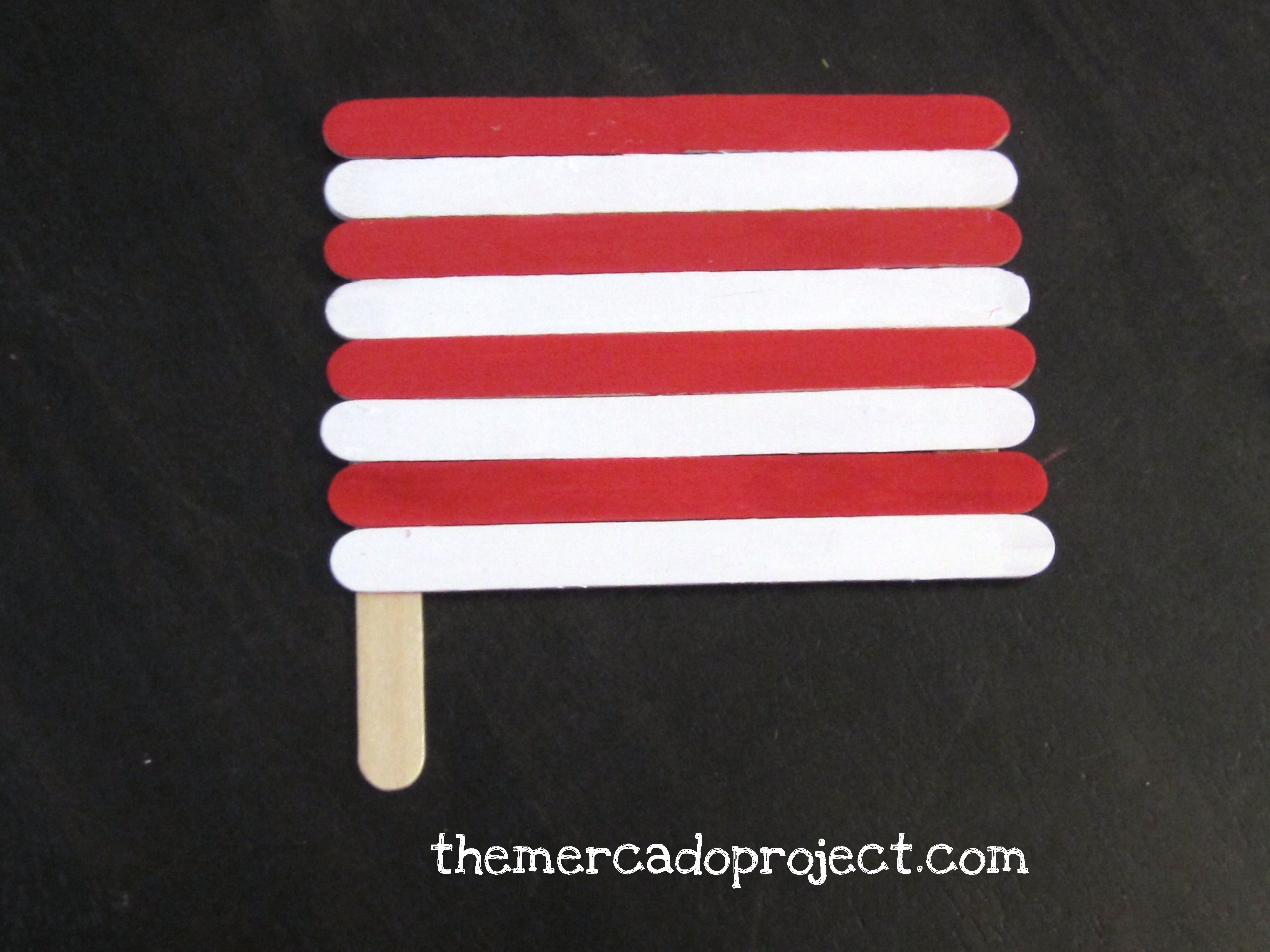We glued the final craft stick to make the handle longer and I also used masking tape on the back of the flag and the handle to secure it better.
