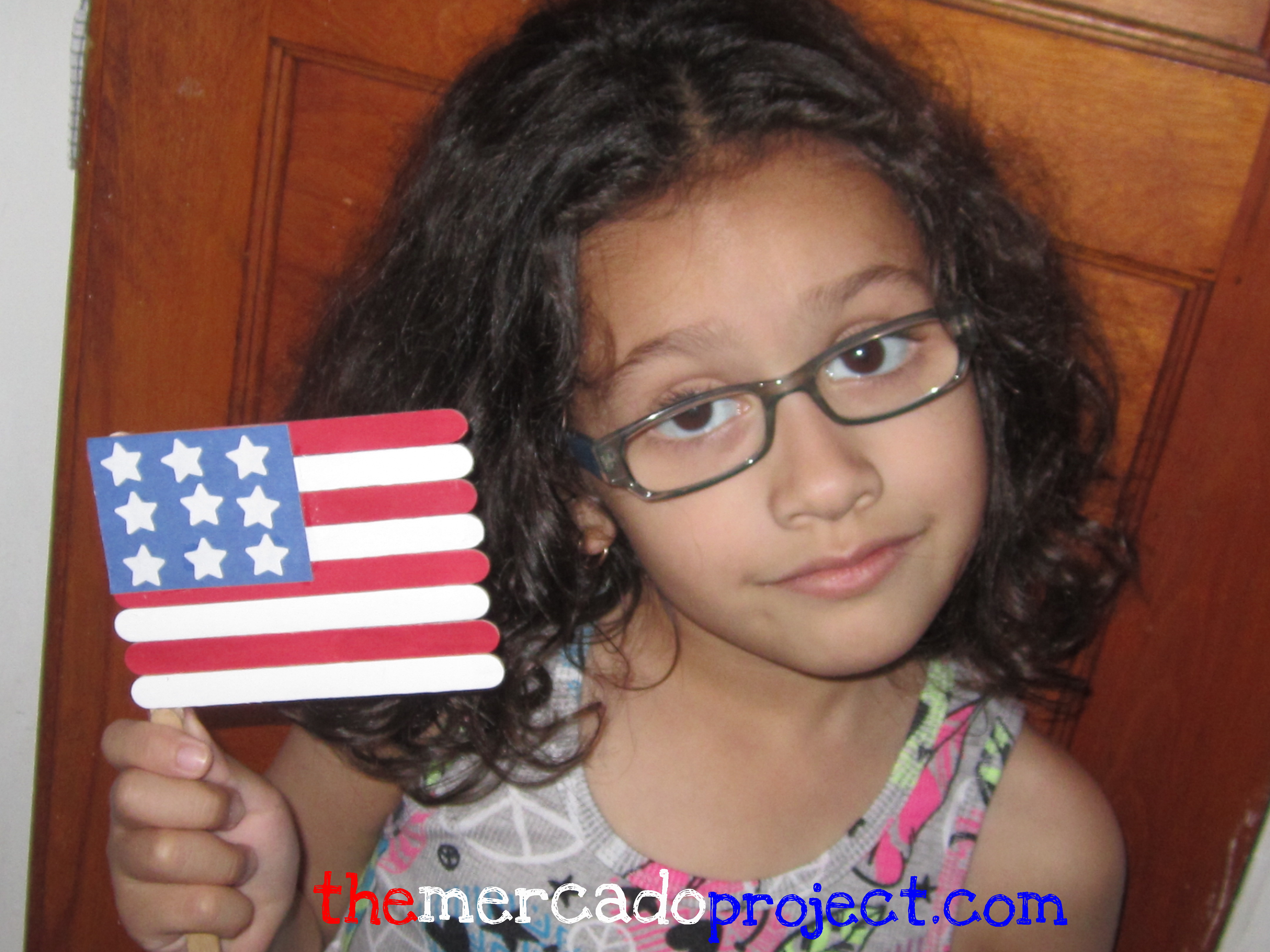 The Fourth of July is a couple of days away and I wanted to find a craft project for my daughter, Olivia, to do for this day.  I found a great project with craft sticks and here’s what we did: