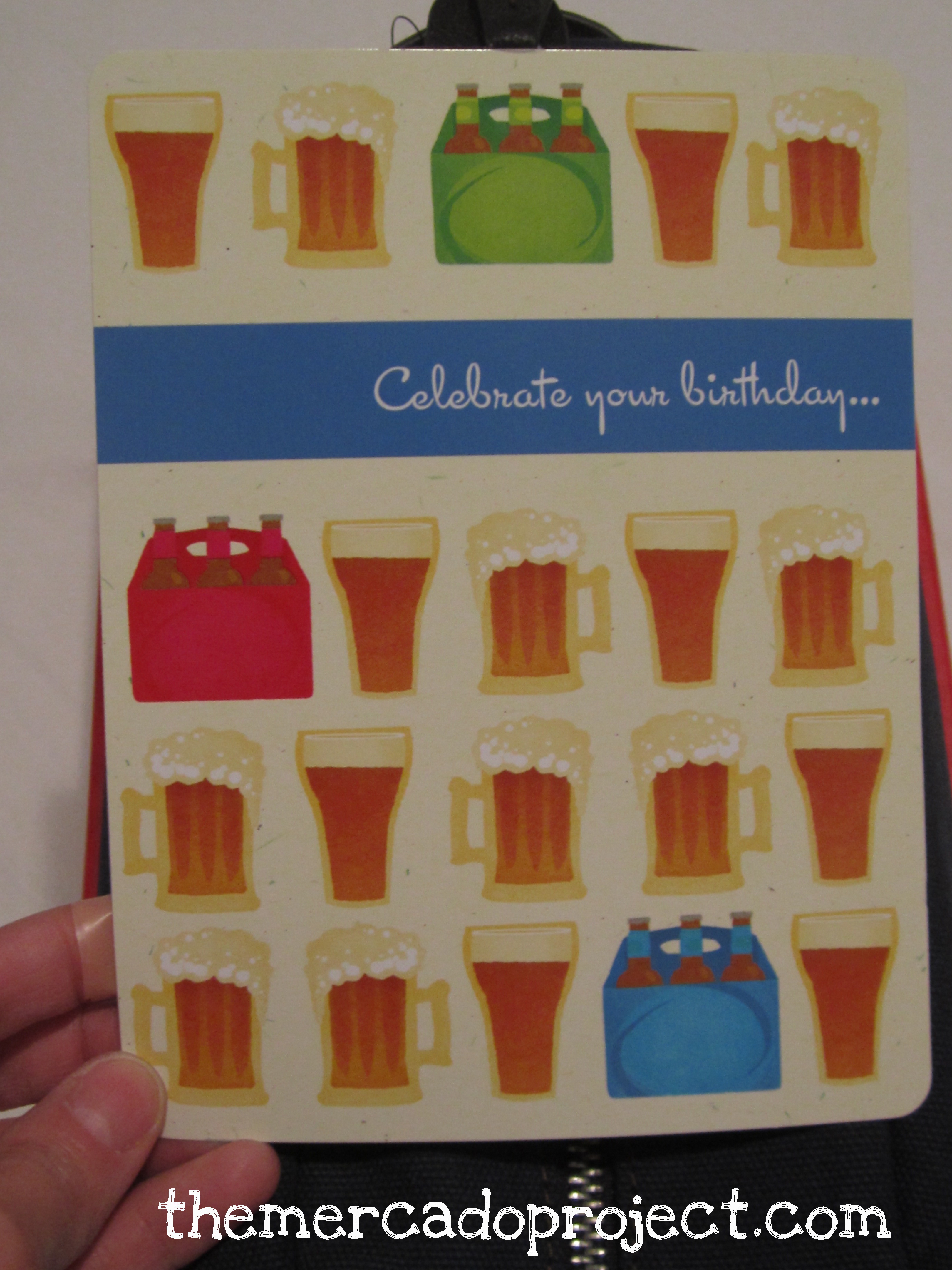 I found a birthday card (Target’s $1.00 card section) with beer on the front.  How great and perfect is that for any man who loves a pint of beer?  Best card ever I say!