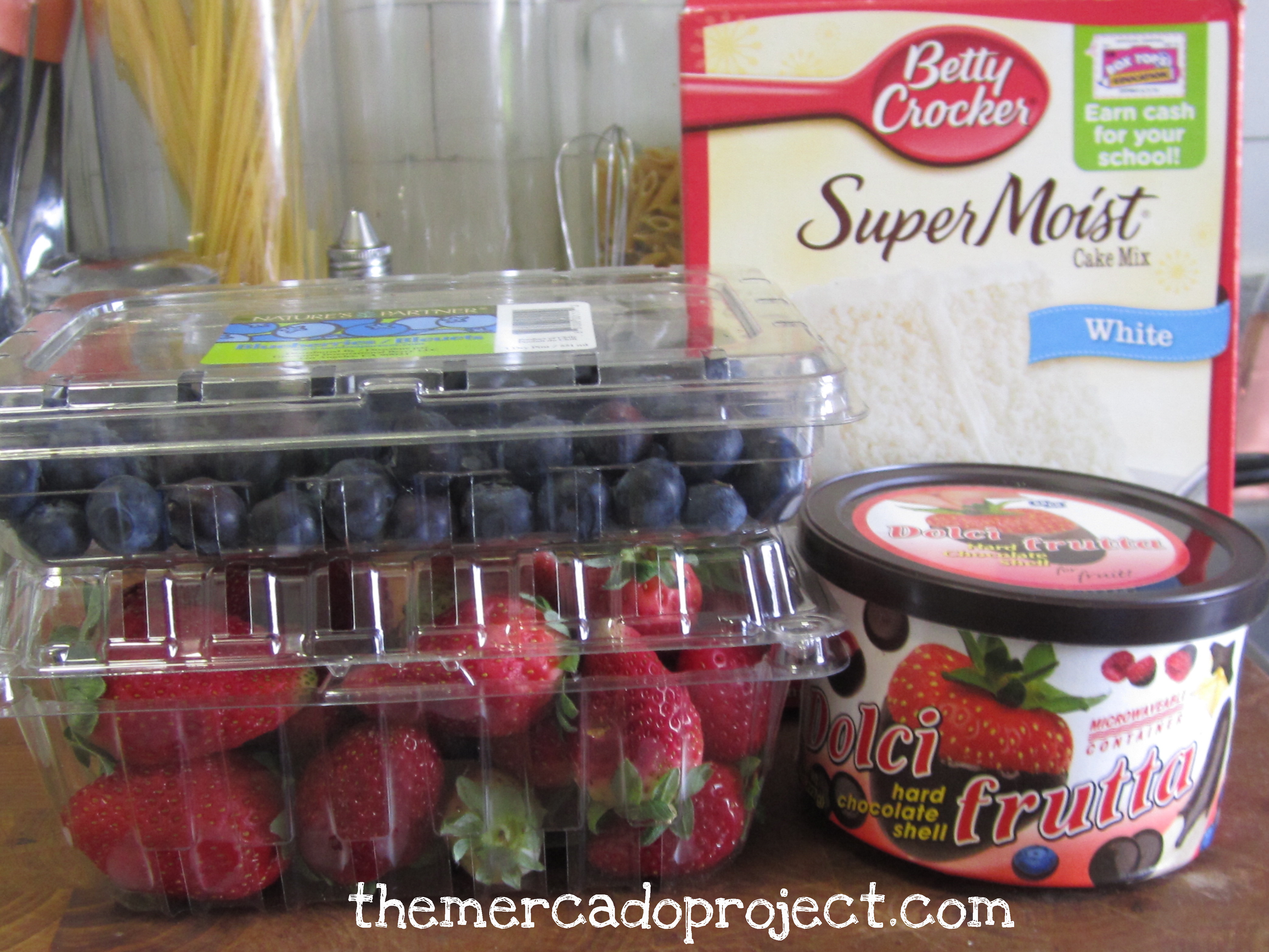 I melted a little bit of the Betty Crocker Rich & Creamy Chocolate frosting (15 seconds in the microwave) in a glass bowl and this made things easy to spread on the cake. I really don’t like when the cake crumbs combine with the frosting. I threw a little bit more of sprinkles, yes more, on the frosting and then…