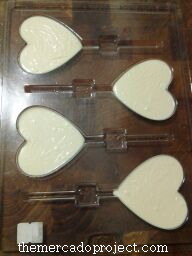 You can buy candy wafers in different colors.  I’m going to get them in red and using this candy mold make some lollipops for Valentine’s Day.