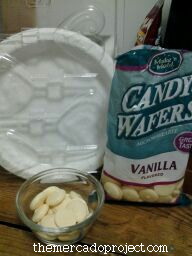 While the cupcakes are baking, melt butter scotch candy (found this at AC Moore craft store) in your microwave and fill candy mold.  Place into freezer for about ten minutes.